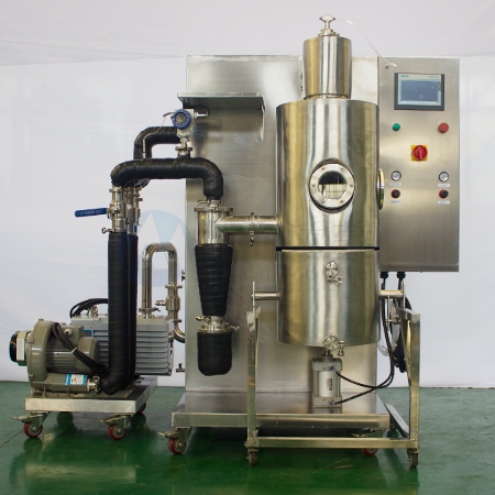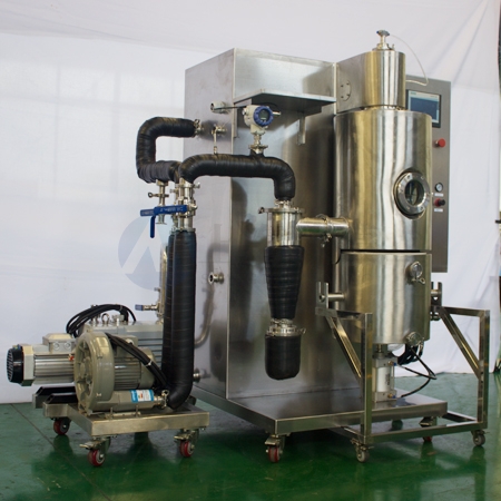 實驗室冷凍噴霧干燥機適用于熱敏性、粘稠性、活性物料及含糖量高的物料的低溫干燥,如中草藥天然產物提取液、乳制品、生物制劑、酶制劑、水果原汁、高分子材料等。